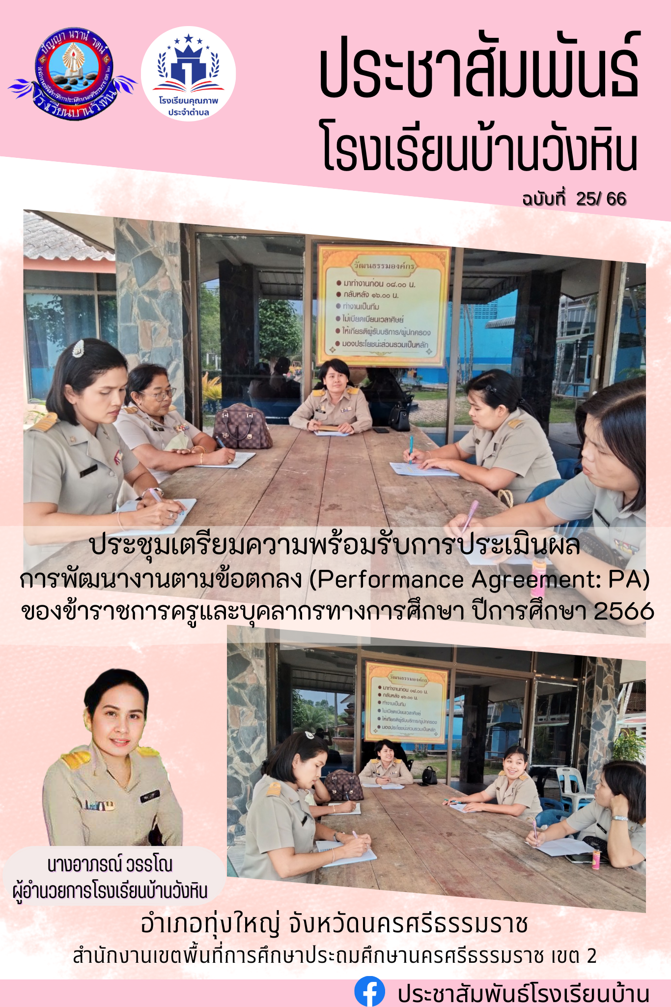 ประชุมเตรียมความพร้อมรับการประเมินผล การพัฒนางานตามข้อตกลง (Performance Agreement: PA) ของข้าราชการครูและบุคลากรทางการศึกษา ปีการศึกษา 2566