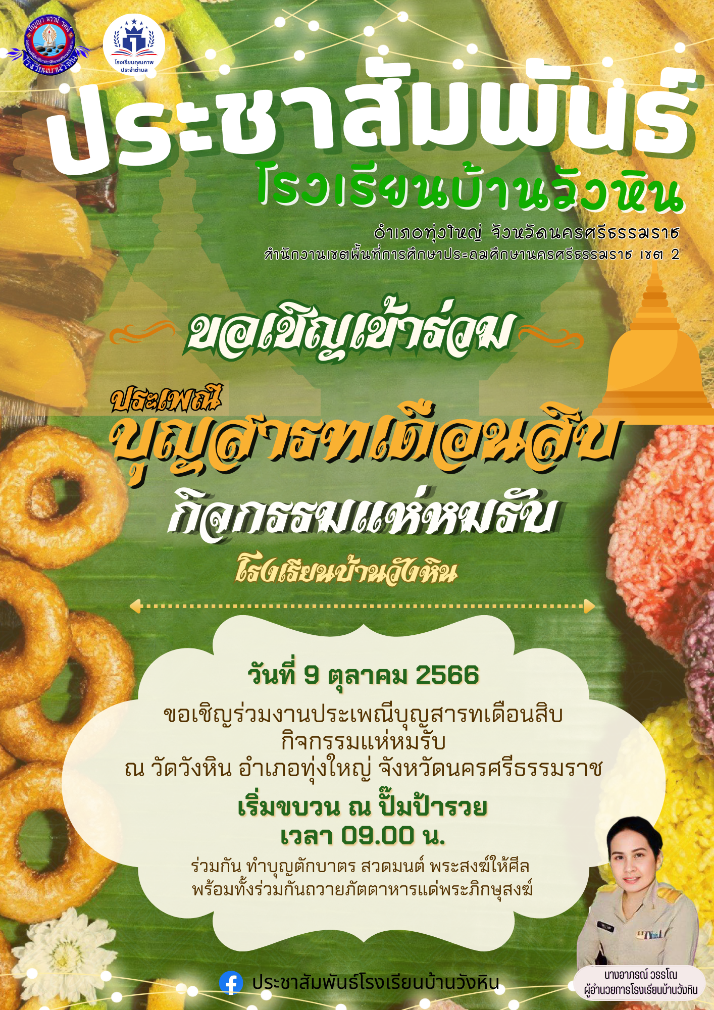 ขอเชิญร่วมงานประเพณีบุญสาทรเดือนสิบ กิจกรรมแห่หมรับ ณ วัดวังหิน อำเภอทุ่งใหญ่ จังหวัดนครศรีธรรมราช