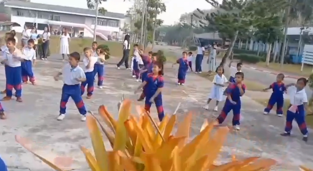 กิจกรรมออกกำลังกายตอนเช้าของนักเรียนโรงเรียนบ้านวังหิน