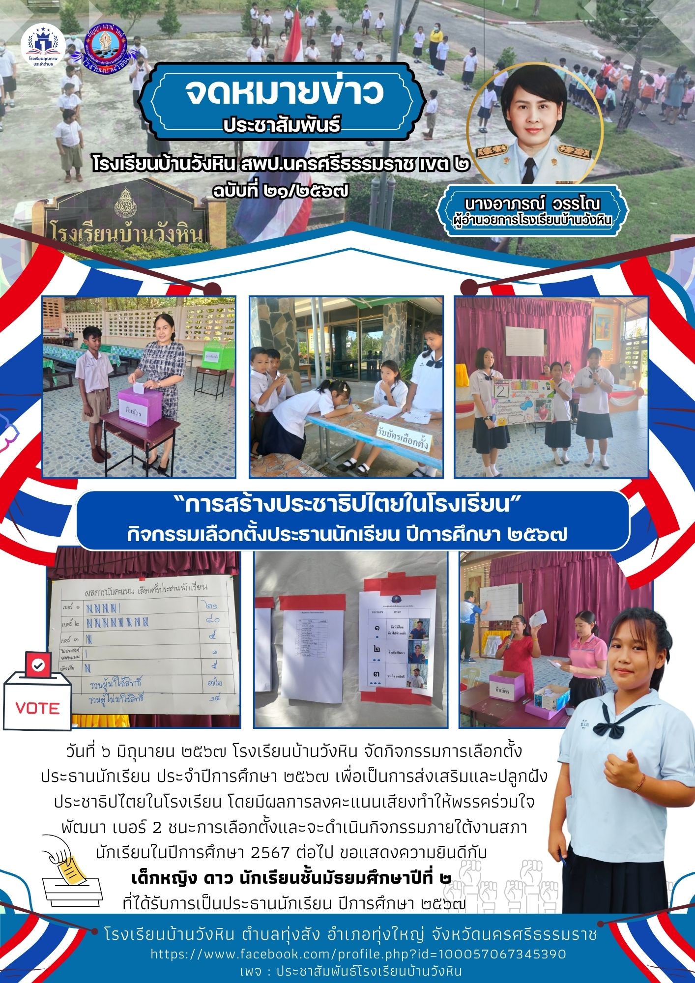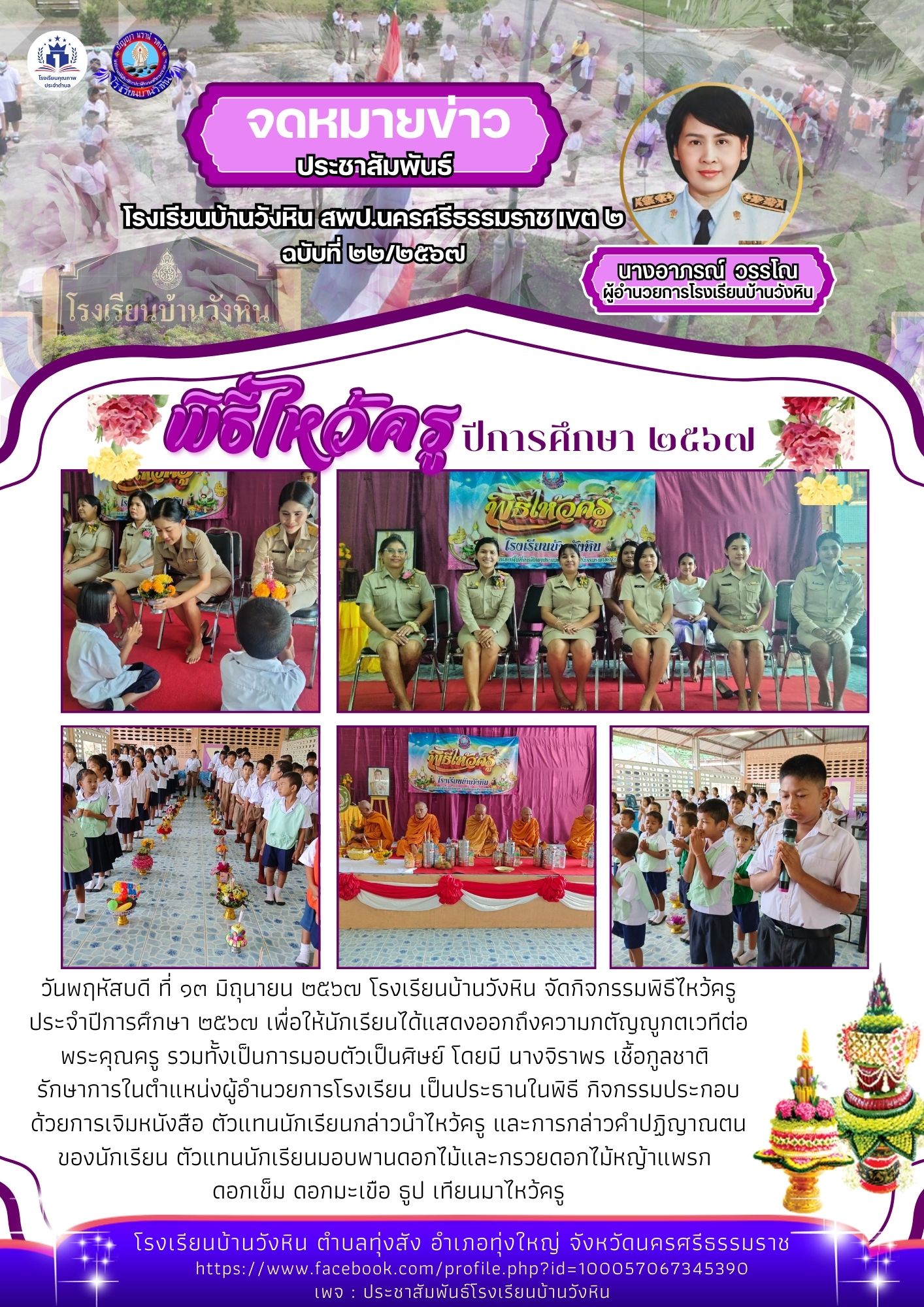 โรงเรียนบ้านวังหิน ขอขอบพระคุณ ????นางเนาวนิต ไกรนรา กรรมการผู้ทรงคุณ ????นางกาญจนา ชะอุ่มดี ครูชำนาญการพิเศษ ครูโรงเรียนบ้านทุ่งกรวด เป็นคณะกรรมการการประเมินผลการพัฒนางานตามข้อตกลง (Performance Agreement: PA) ของข้าราชการครูและบุคลากรทาง การศึกษา ปีการศึกษา 2566